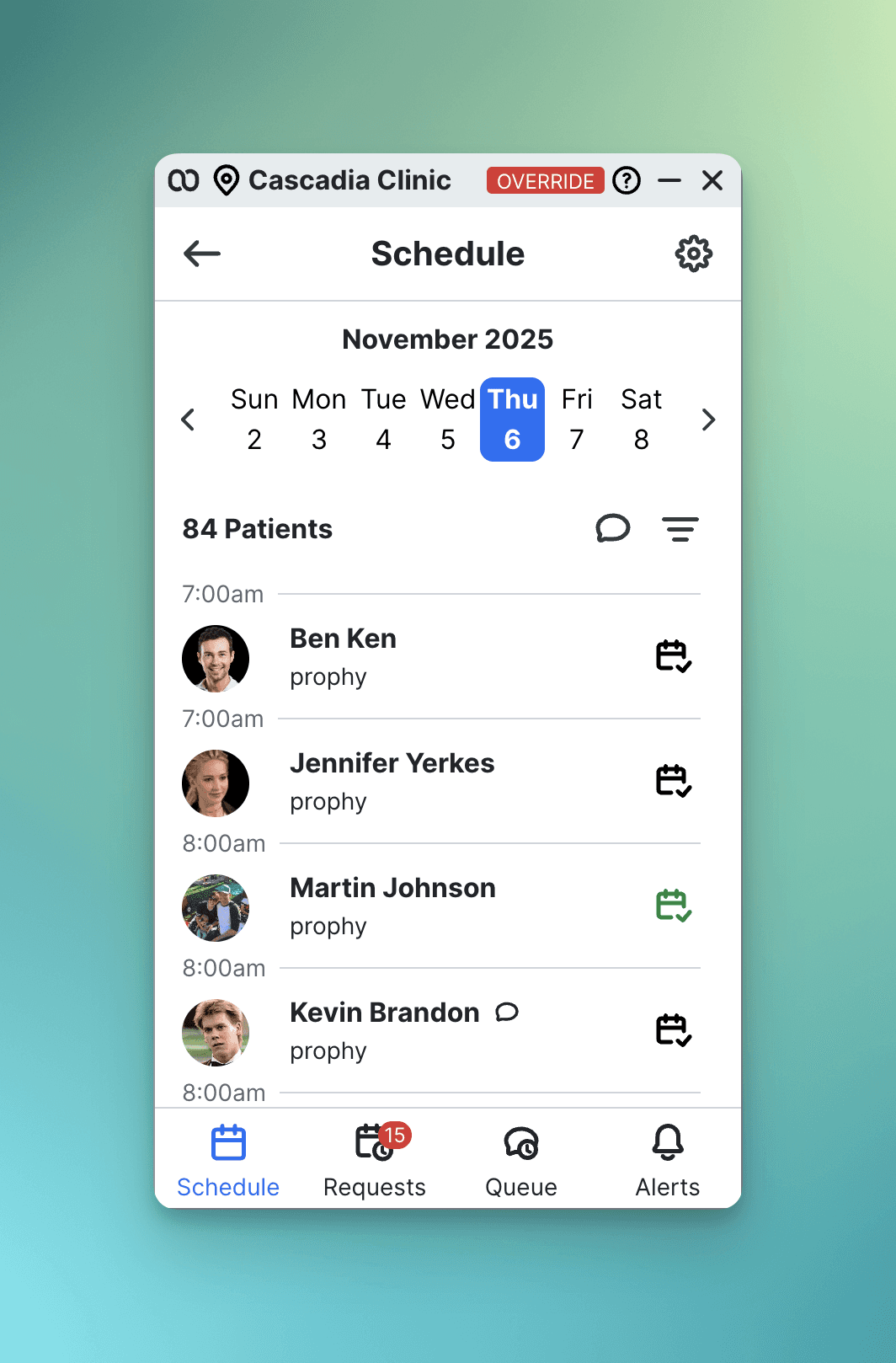 Mid-development, we discovered critical backend limitations we hadn't validated upfront. The data architecture had no API endpoints for appointment type colors, forcing all appointments to display the same color. Practice management integrations were pulling in every provider who'd ever worked at a practice, creating calendars with 50+ columns of mostly inactive staff. Some integrations had bugs that created duplicate provider records.
